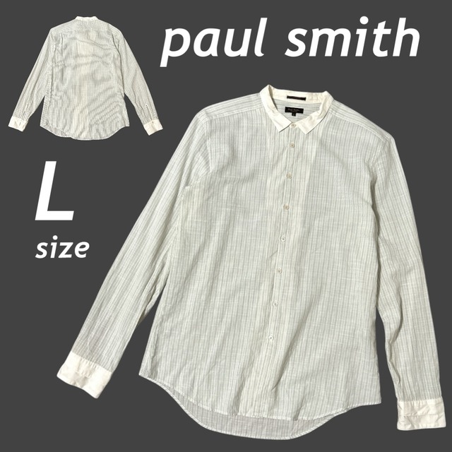 paul smith ポーズミス メンズ 長袖シャツ L 薄手 綿 コットン ストライプ柄 アイボリー×ライトグレー系 (B28)★