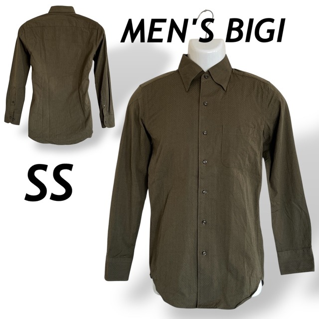 MEN'S BIGI メンズビギ 長袖シャツ SS ジャガード ボタンダウン MO193FBD02 カーキ系 (B29)★