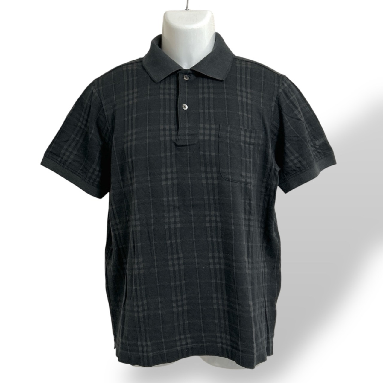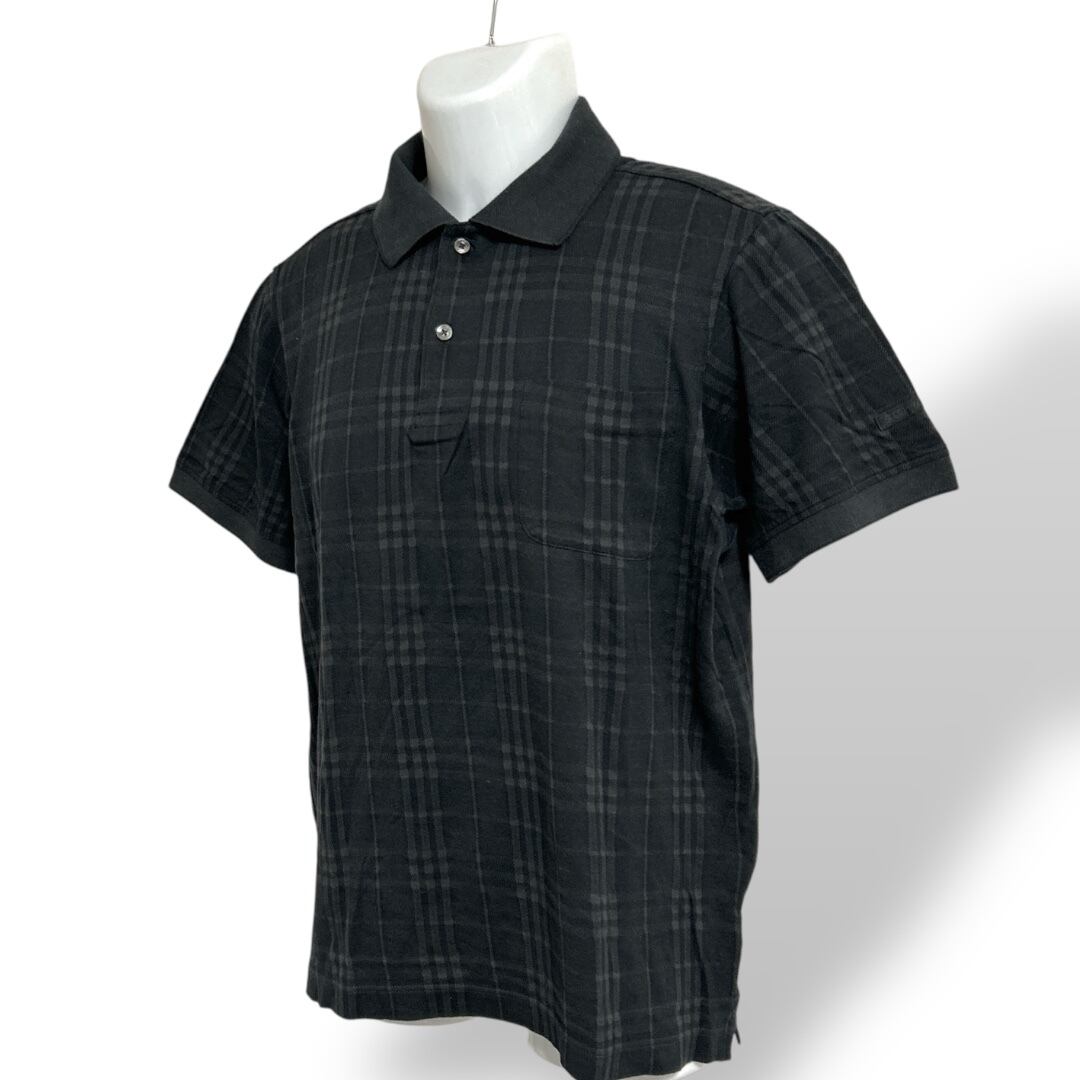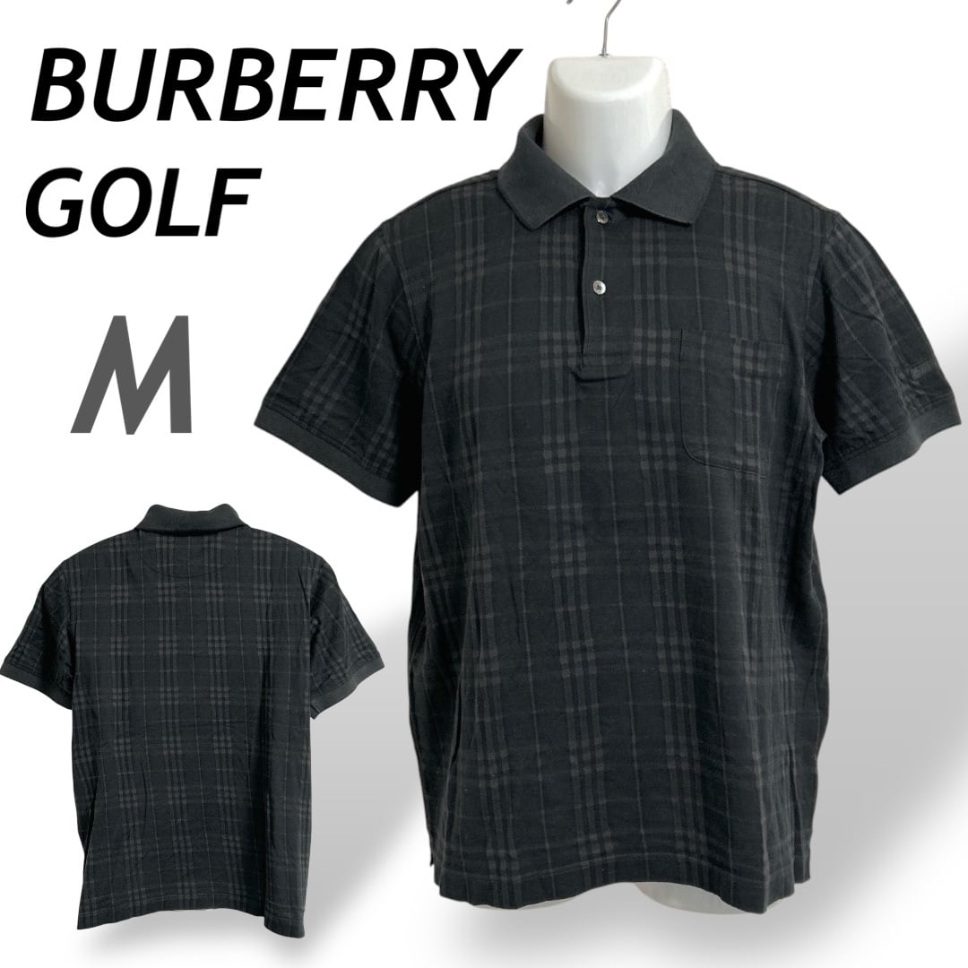 BURBERRY GOLF バーバリーゴルフ メンズ ゴルフウェア M 半袖ポロシャツ BFV30-419-09 三陽商会 日本製 ノバチェック ブラック系 (D3)★
